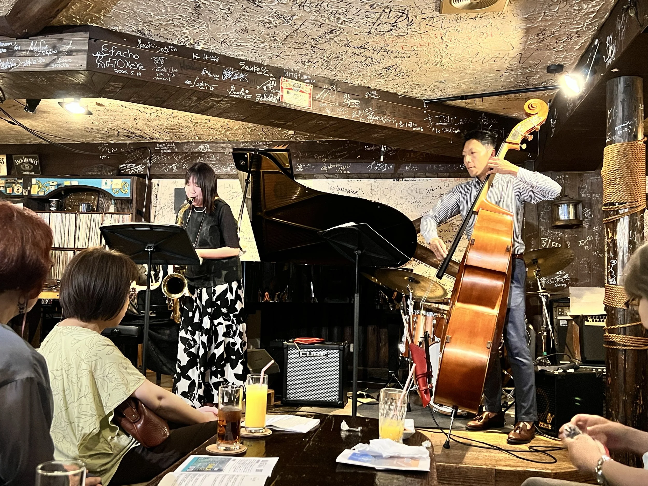 We watched a group called BaOLA, which plays all original jazz songs. There are some core members and sometimes guests are invited to play with them. This time it was a jazz quartet, drums, bass, saxophone and piano.